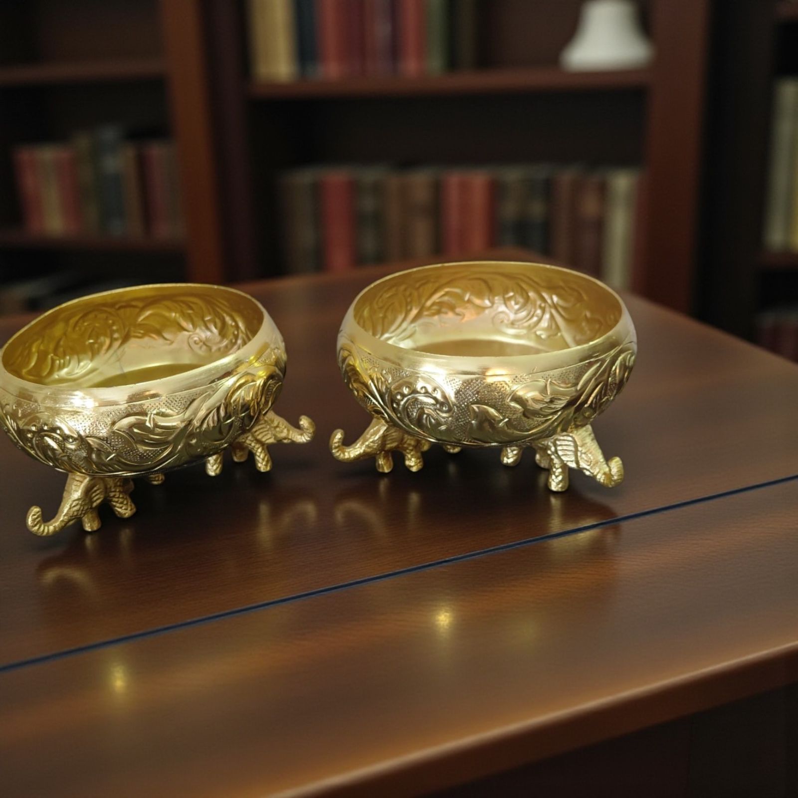 Elephant Stand Urli in Gold Finish – Decorative Brass Look Bowl for Home & Festive Décor (8 Inch)