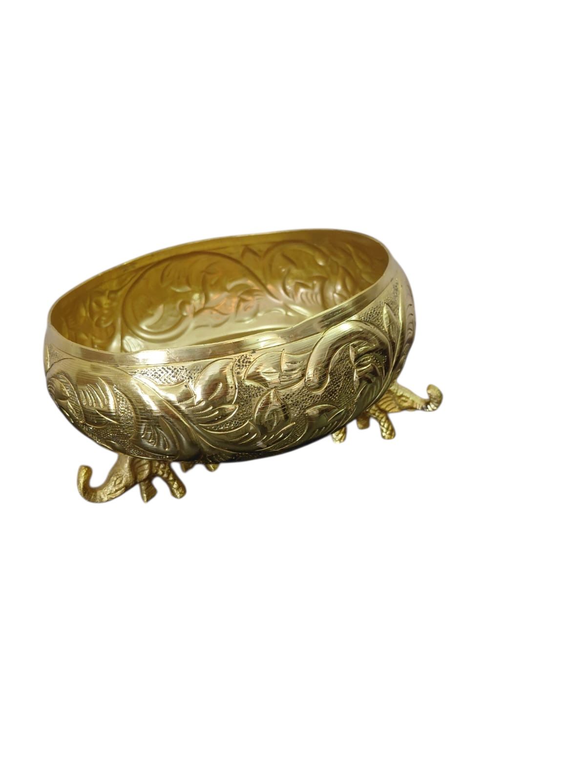 Premium Design: Beautiful urli bowl supported by elephant motifs, symbolizing strength and good fortune.