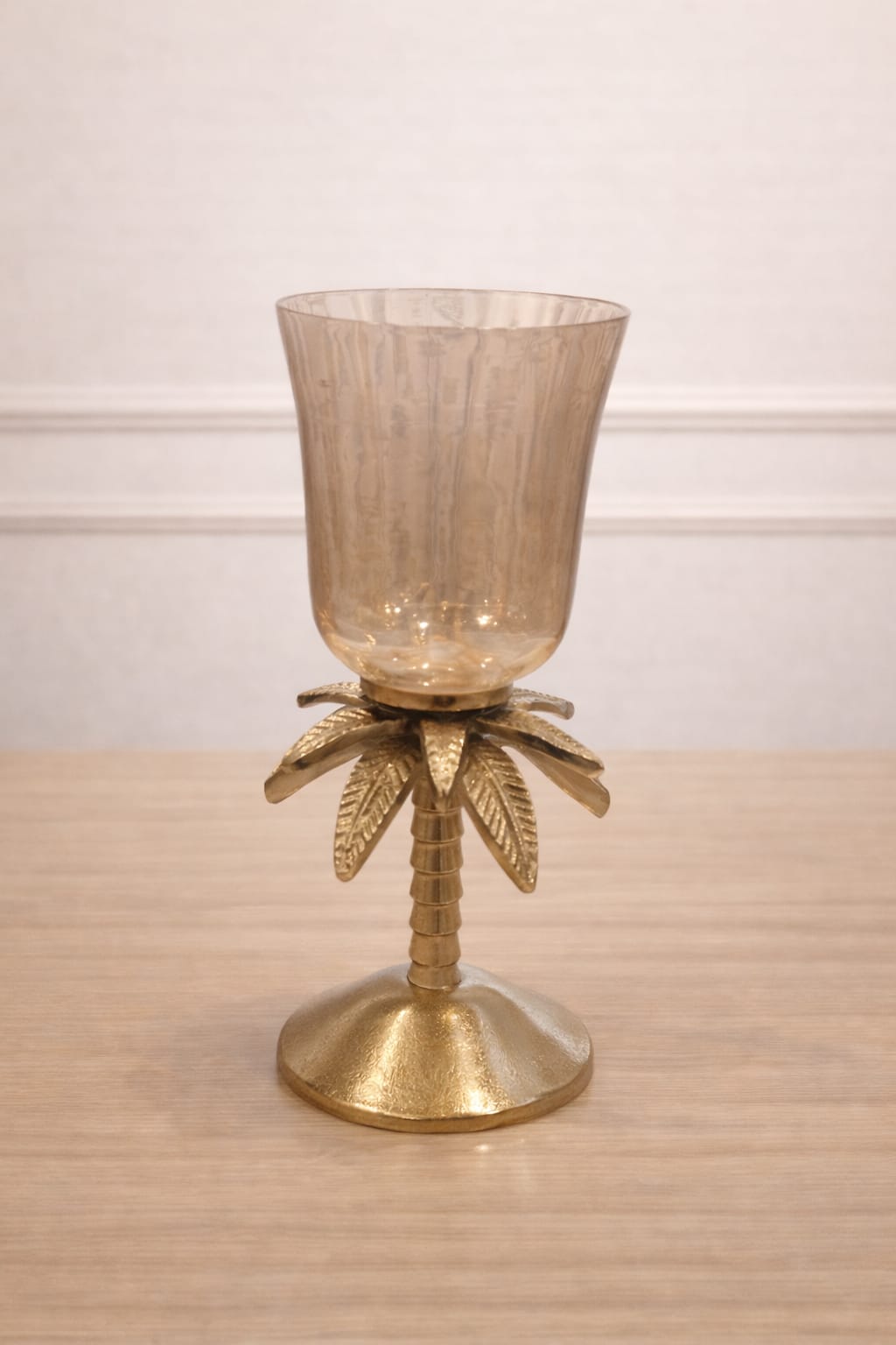 Golden Palm Glass Candle Holder – Luxury Decorative Home Décor Accent