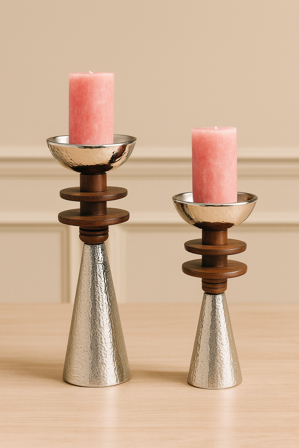 Wooden & Stainless Steel Candle Holder – Modern Table Décor (Large & Small Sizes)