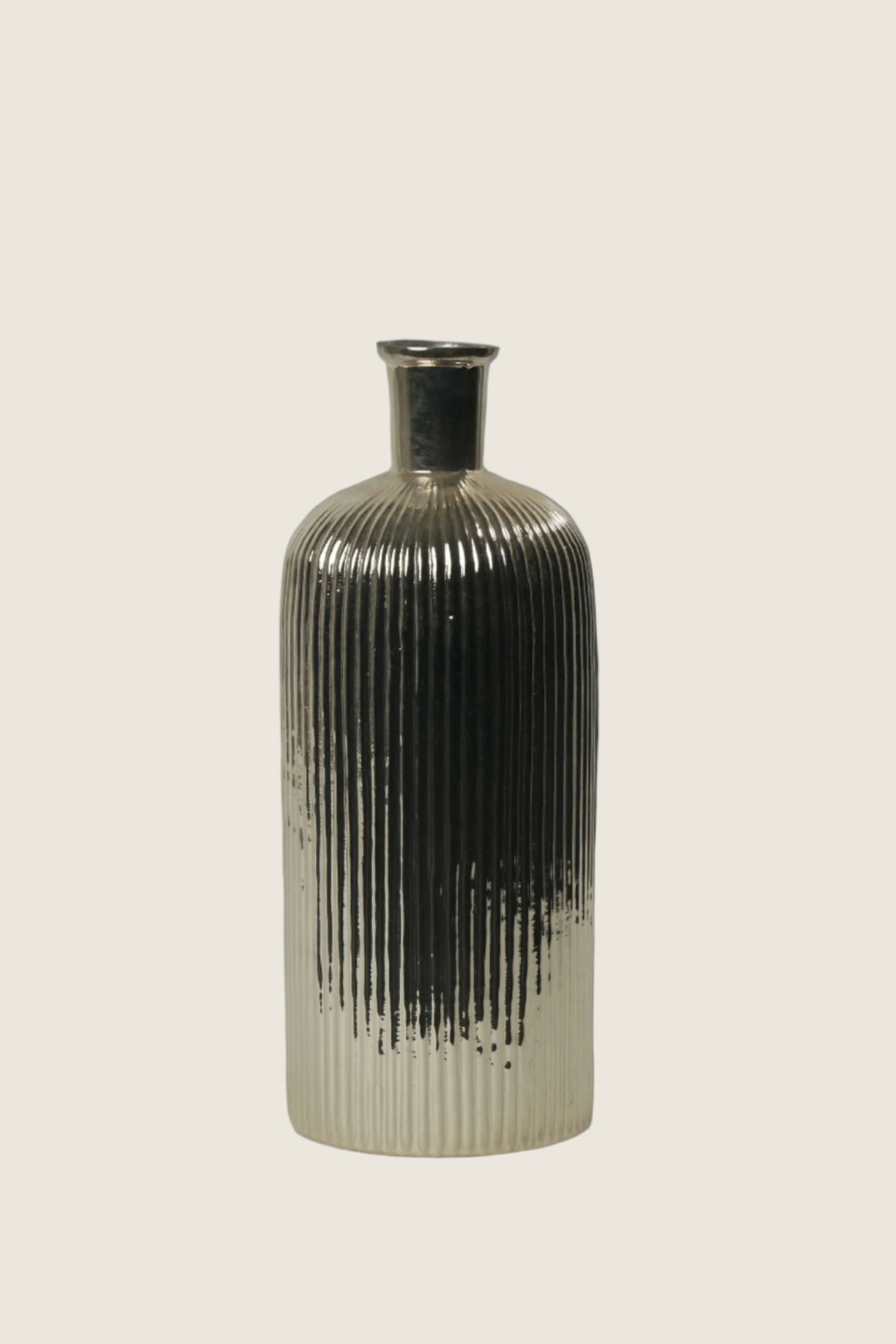 A sleek, mirrorโfinish glass vase that's both modern and elegant. The reflective coating beautifully catches light, making this piece a stunning centerpiece for fresh or dried florals. At 10โณร5โณ, itโs wellโproportioned and crafted from quality glass,