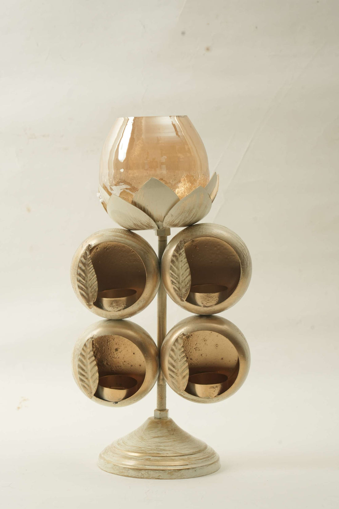 Grace your space with the subtle elegance of our Sleek Flower Metal Candle Holder. Crafted...
